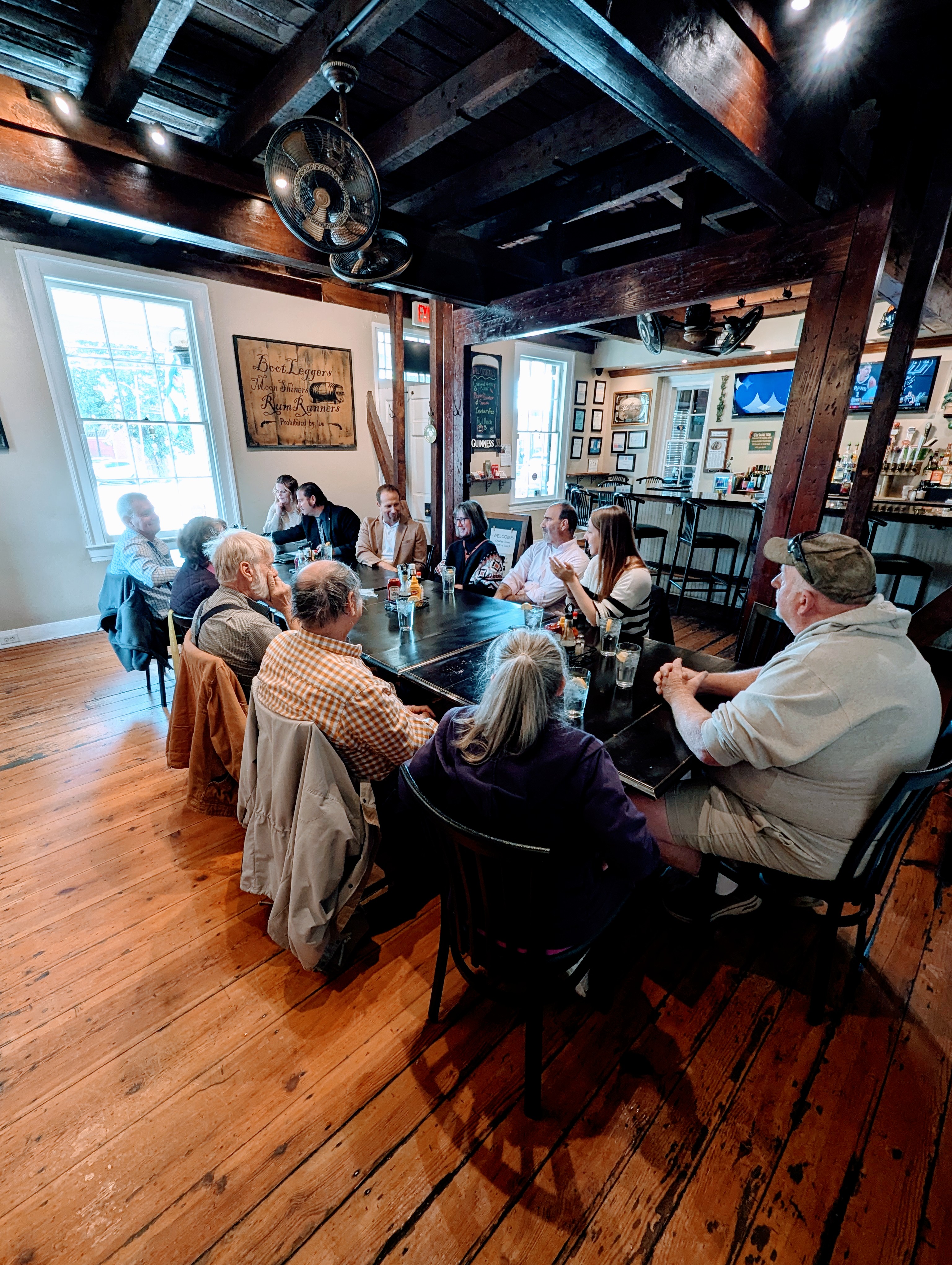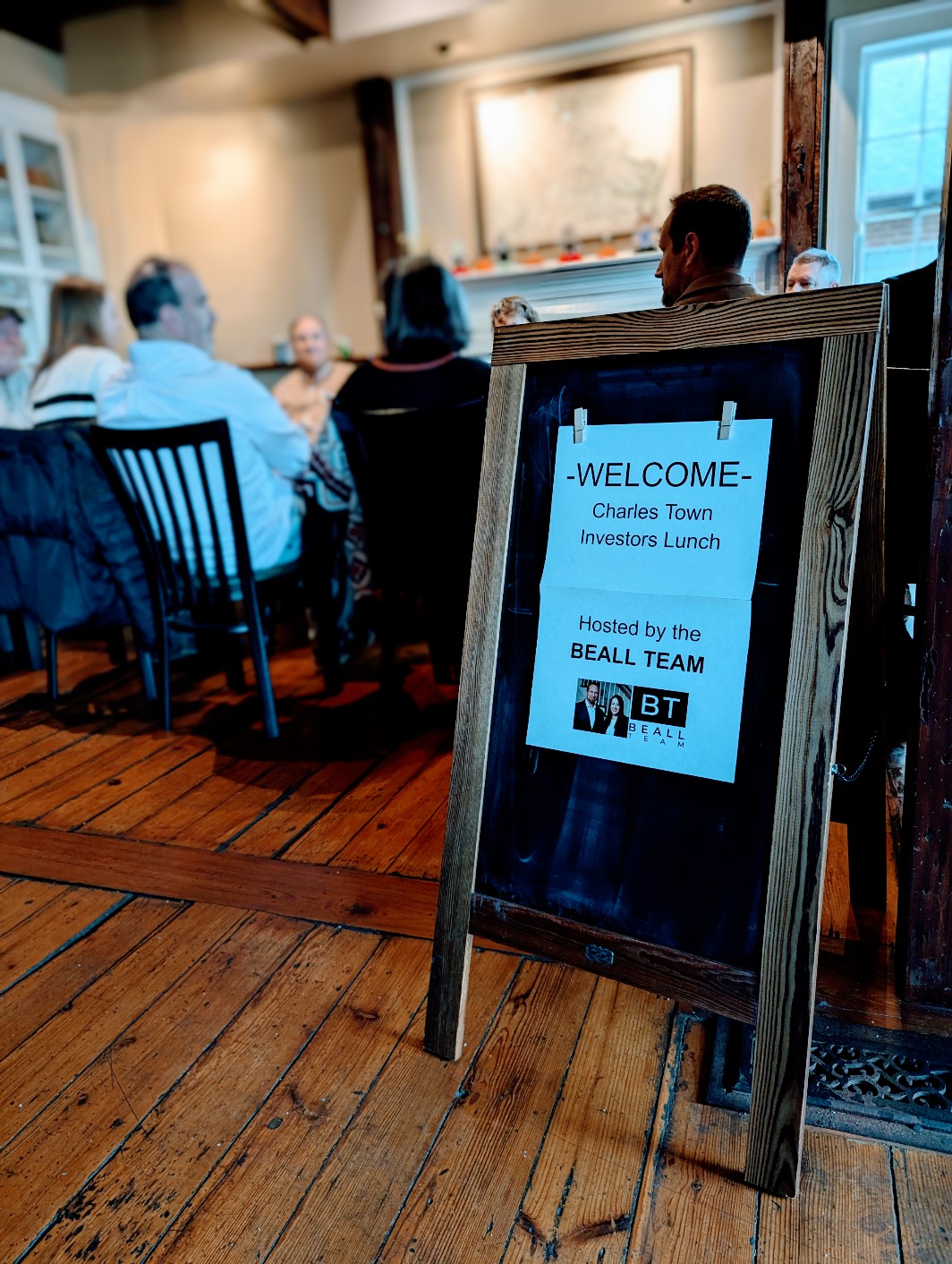 Our Q3 2025 Investor Lunch guests were local power couple Ann Paonessa and Aaron Amore. They are long-time residents, local business owners (Amore Law, PLLC), local commercial landlords, and have volunteered and worked consistently over the years to make Charles Town a better place. They have a particular passion for preserving and improving the historic and downtown areas.